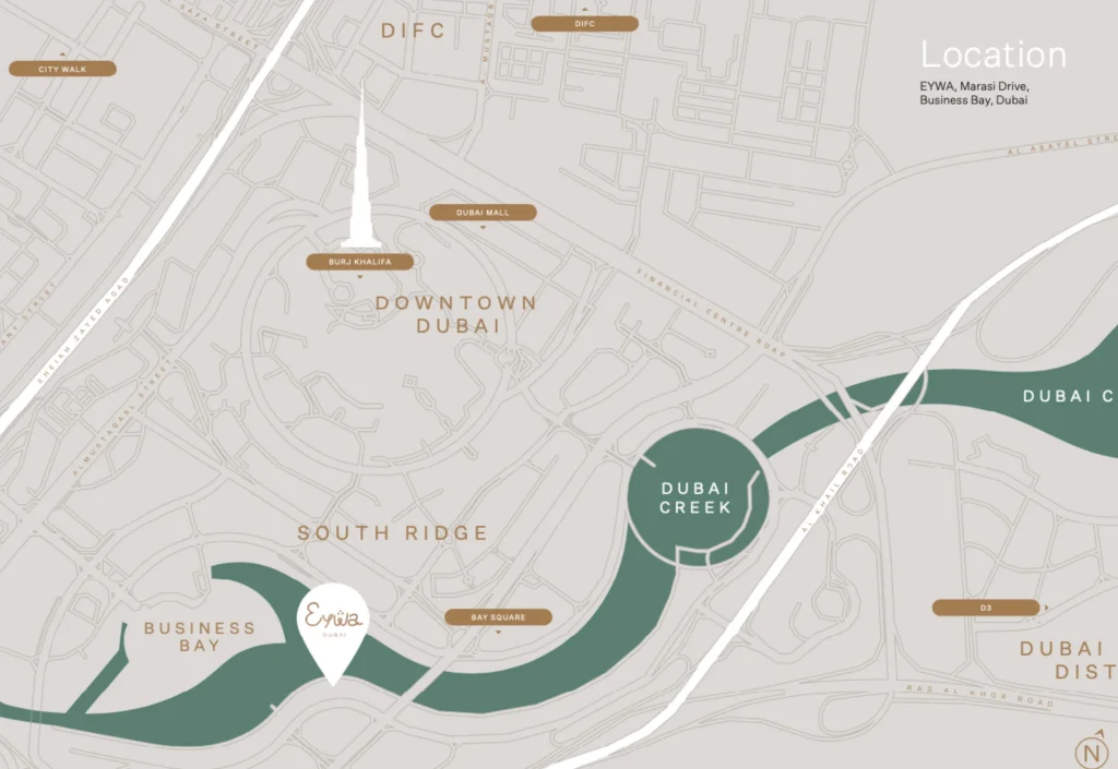 Eywa is strategically located in Business Bay, Dubai, offering unparalleled access to key landmarks: